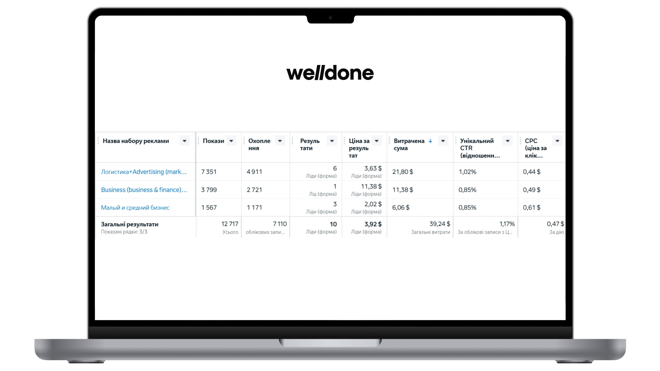 Результат: 889 B2B-лидов со средней стоимостью 1,09$ за заявку.