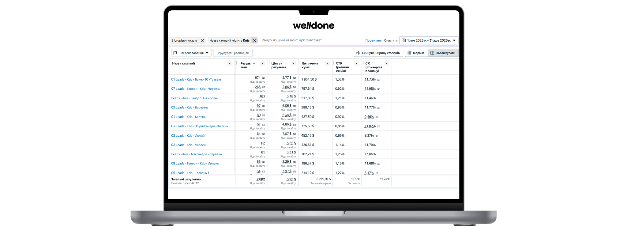 - Гнучкість клієнта та готовність підхоплювати наші ідеї дали змогу швидко експериментувати з оферами — акціями, бонусами, розтермінуванням. Завдяки чому ми оперативно знаходили найбільш конверсійні пропозиції.
